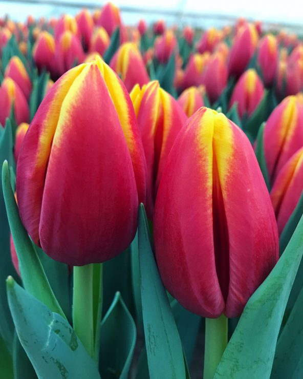 Прекрасный тюльпан Henni van der most очень нежный с классической формой бокала. Цветок с высоким бокалом, до 10 см, яркий красный с желтой каймой цвет тюльпана вспыхивает как огонь.